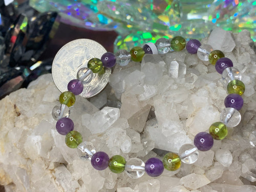 Peridot, Amethyst, and Quartz Bracelets