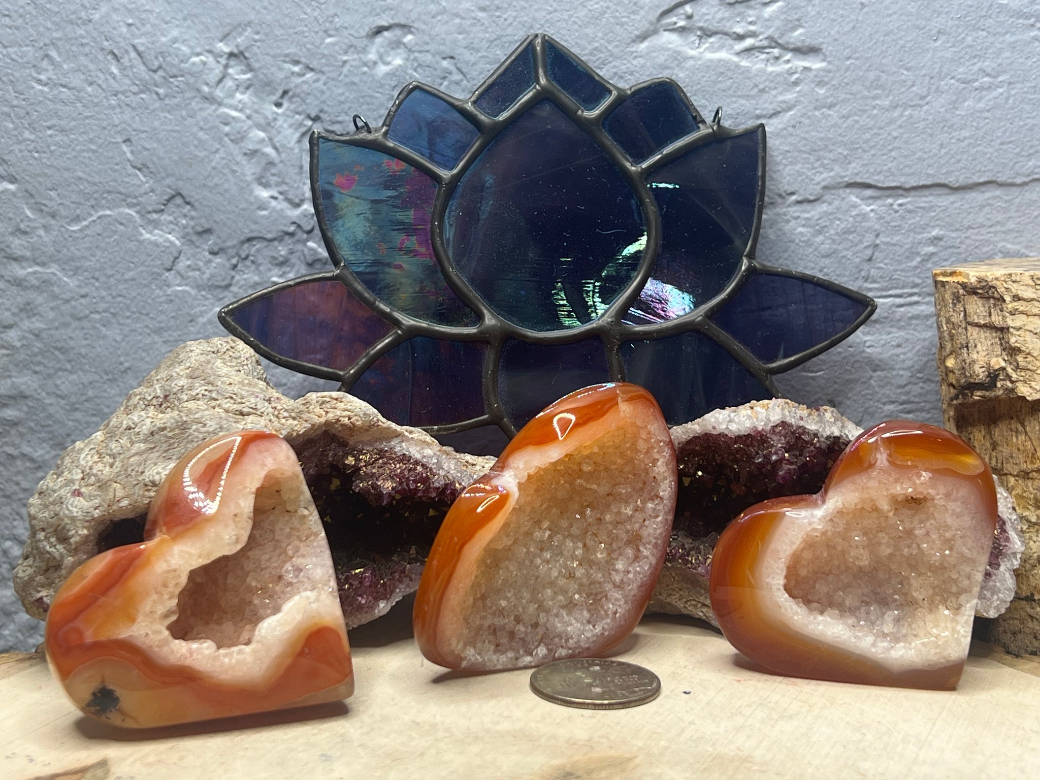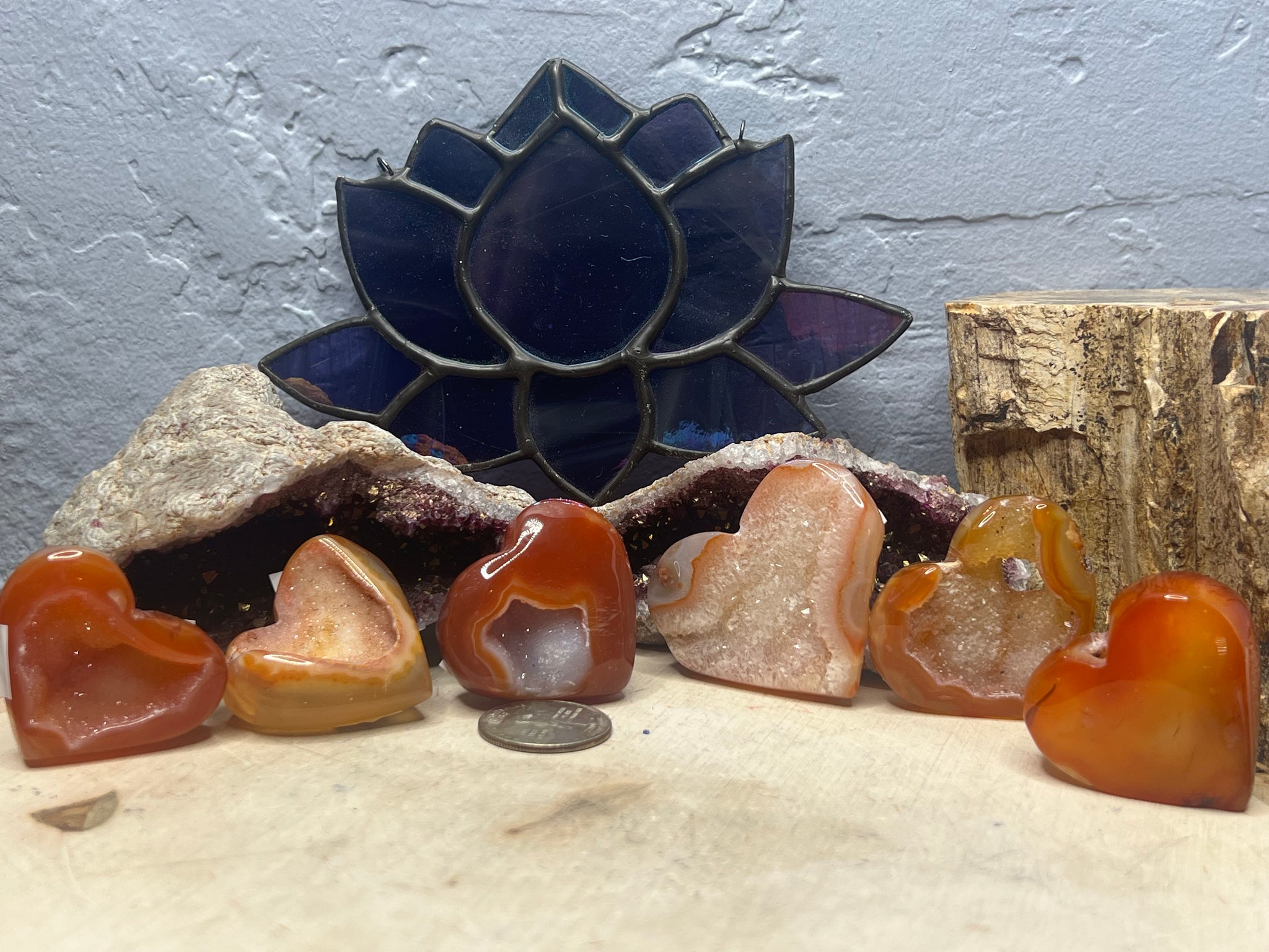 Carnelian works with the sacral chakra and has fire energy. These measure between 1.57-2.54” wide. The picture shows the quality of the item you will receive. The individual colors may vary. The price listed is for one heart.
